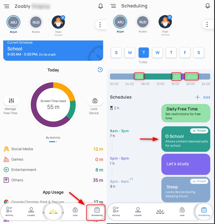 - Use School & Sleep Schedules – Automatically block access during school hours or bedtime.