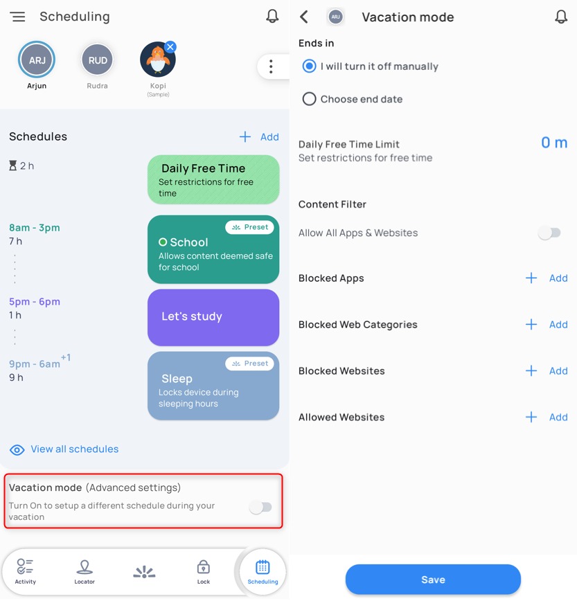 - Turn on Vacation Mode – Relax screen limits during holidays or special occasions.