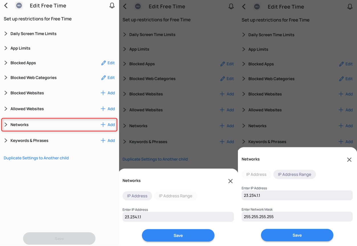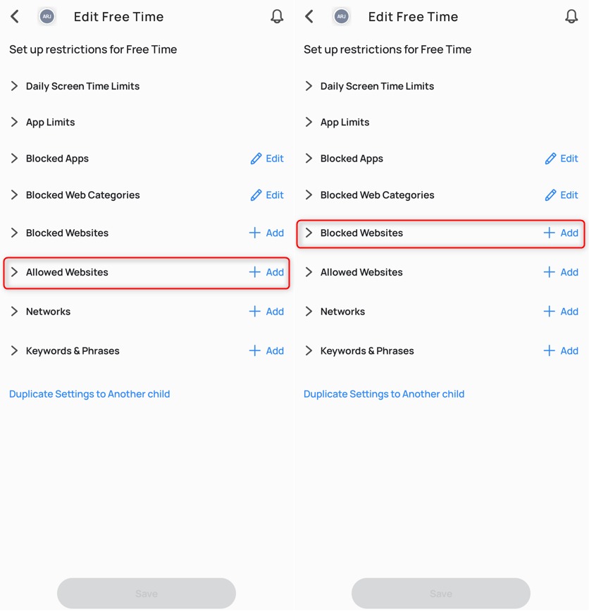 - You can customize settings for one child and duplicate them to others using Duplicate settings for Another child option.