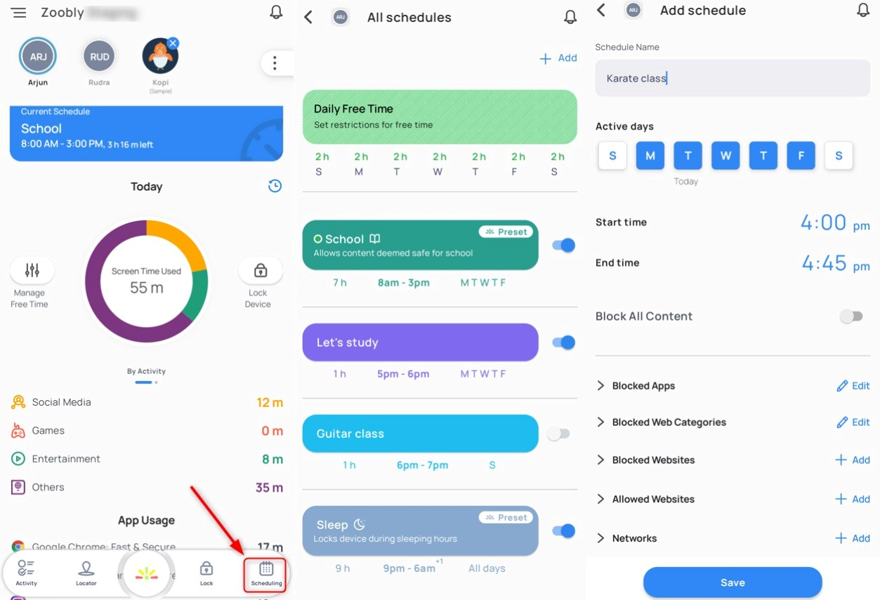 Please note that all the above customizations apply only during your child’s Free Time. Each schedule have its own settings, so you can customize them individually for your child.