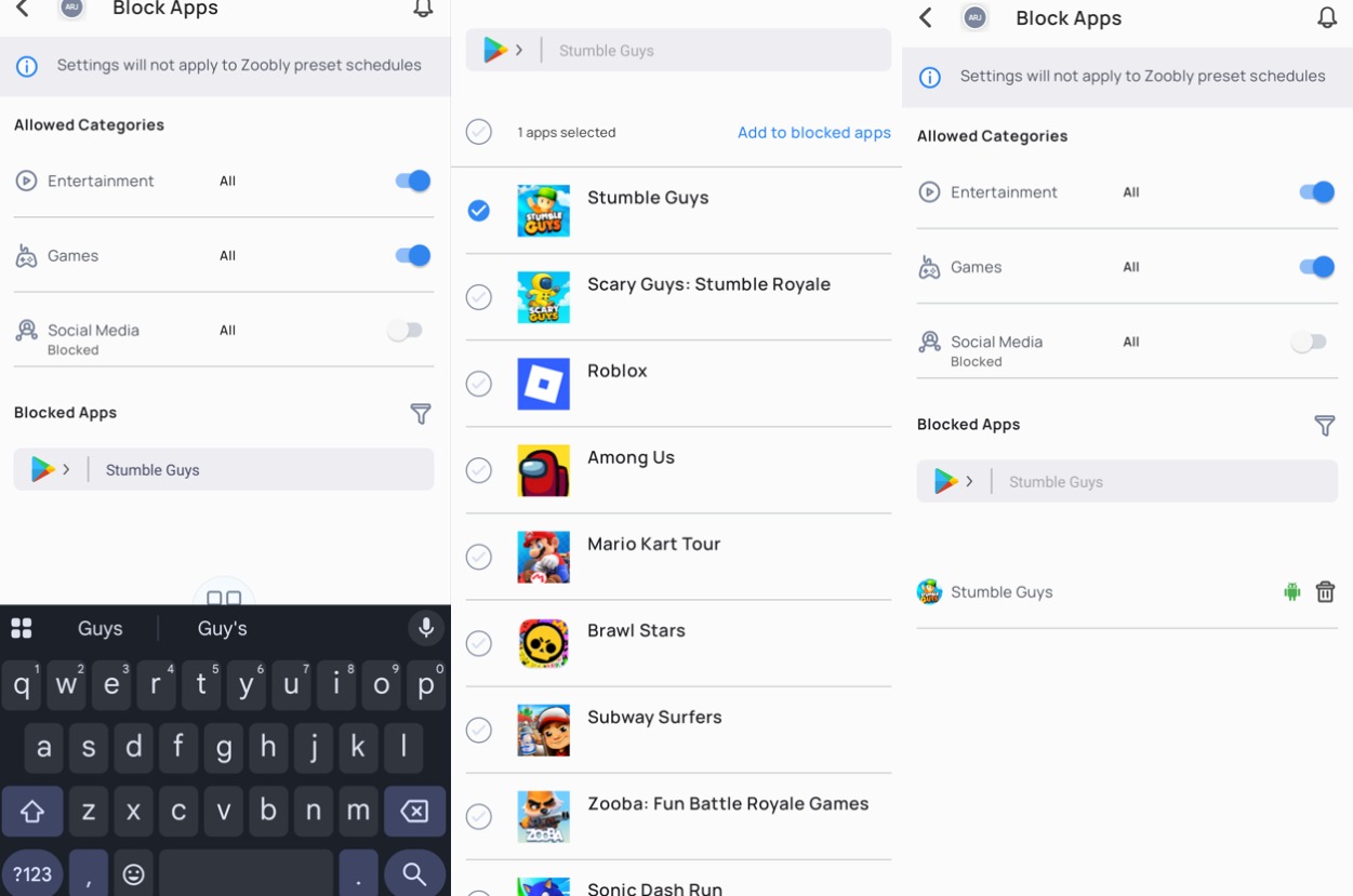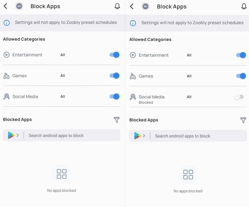 - You can block entire app categories Social Media, Entertainment, or Games with zoobly.