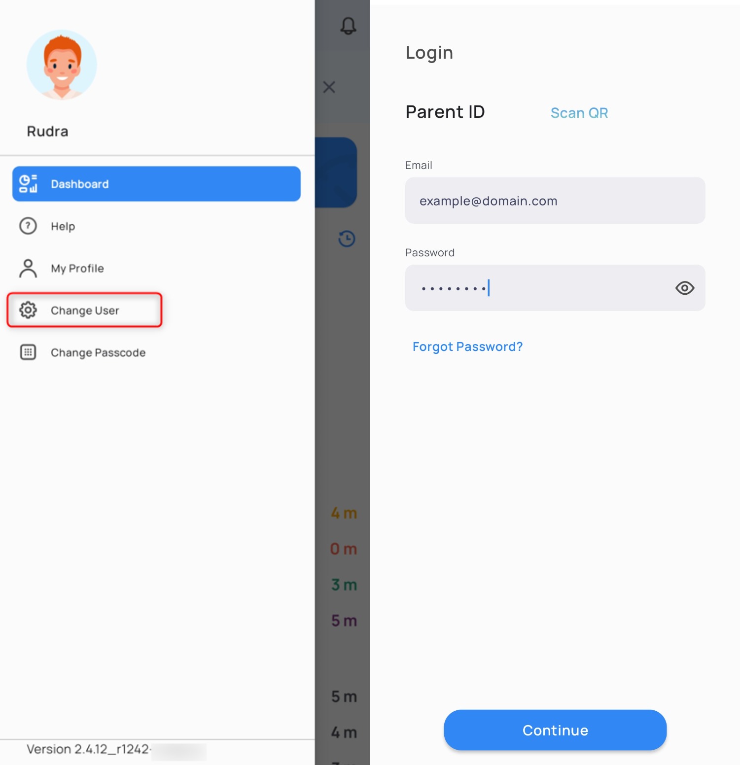 - Tap the Hamburger menu (☰) in the top left corner and select Change User.