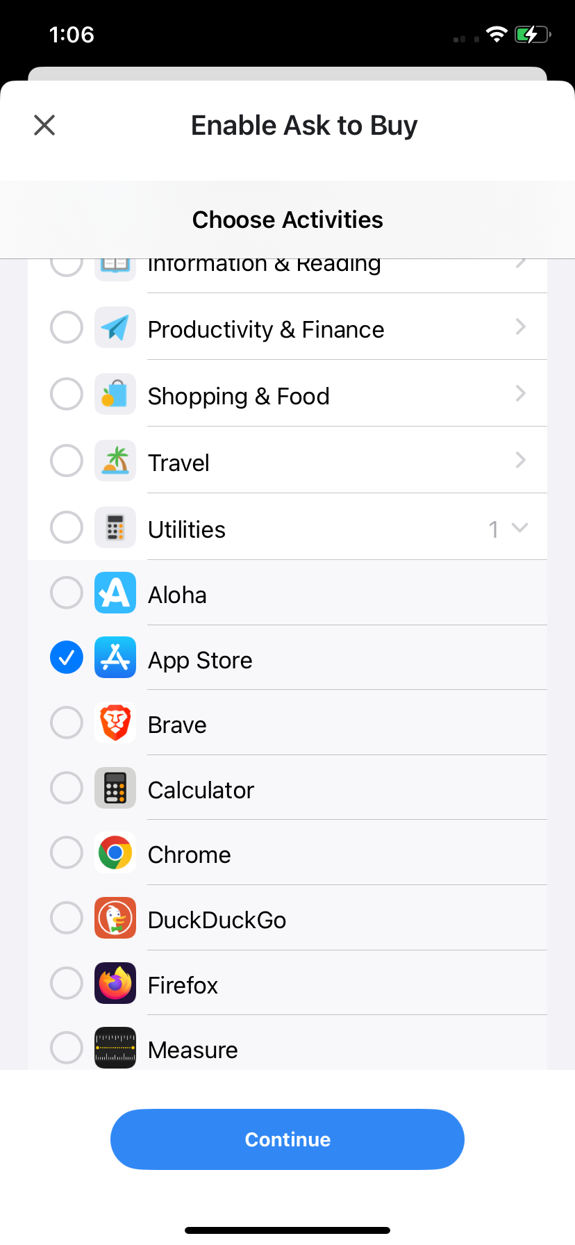 Note: If you had selected the wrong app by accident, just go back to the menu, tap “Disable Ask to Buy,” and repeat the steps above to select the App Store again.